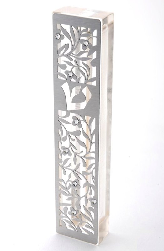 בסיס שקוף מפרספקס ועליו נגזרת נירוסטה בשילוב אבני סברובסקי